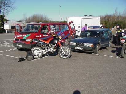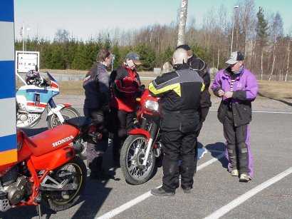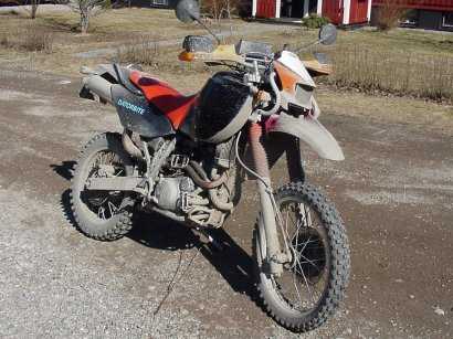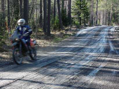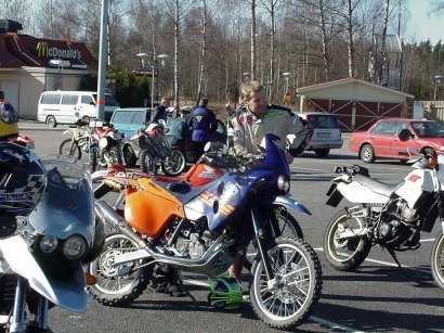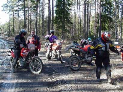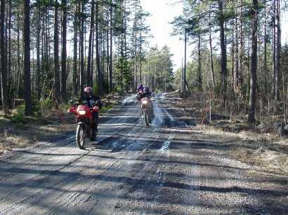 Lördag 8 April ordnade Svenska Offroadentusiasterna ( SOE ) sin traditionella åkning 100% Offroad. Redan innan start låg förväntningarna högt eftersom gott väder utlovades och hela 136 åkare var anmälda, därav 6 stycken från Fagersta. I två bilar med vardera ett släp med tre hojar på lämnade vi hembyn vid 6-tiden med siktet inställt på frukost i Hummelsta. Vi som åkte var jag med Baghiran, Hood med sin XT, Nisse med sin AT, och Frasse, Markus och Grubb med varsin röd Dominator ( grabbarna handlade en storpack röda Honda ). Efter frukost halvvägs kryssade vi vidare och anlände till Eurostop i Märsta på utsatt tid, 09.00. Vilken syn som mötte oss, en hel parkeringsplan FULL med bara grushojar och grusåkare!! Snabb avlastning, gemensam genomgång, utdelning av färdigklipp roadbook - det är service det - och sedan iväg! Färden gick norrut mot Österbybruk på mestadels torra grusvägar, men här och där med partier av is som gjorde åkningen lite hackig - man tog det gärna lite lugnt när man inte såg utgången av en kurva. Flera som INTE gjorde så tippade omkull, så vitt vi kunde se dock ingen med allvarligare skador på vare sig hoj eller förare. Lunchen intogs på en pizzeria i Österbybruk, en nyhet då man tidigare år haft lunchen i det fria. Det funkade bra med snabb betjäning, och mätt blev man. Kanske är det roligare med lunchen utomhus, men det beror ju på vädret också. Efter Östrbybruk gick vägen österut mot Gimo, till att börja med på helt snöbelagd väg. Med båda benen släpande i marken avverkades en hel del vinterväglag, sedan blev det rejält lerigt på en lång sträcka innan den smått legendariska Bennebol-vägen visade hur en grusväg ska se ut. Utan ( risk för ) is på vägen skulle den vägbiten vara hur kul som helst, nu gick det inte riktigt att få något flyt i körningen pga en och annan förrädisk isfläck. Flera fina vägpartier följde på vägen söderut mot målet, en kort sträcka av karaktären skogsstig ( som började inne på en bondgård och mynnade i en bredare skogsväg ) biter sig särskilt bra fast i minnet. Trångt, mjukt, men med bra grepp, och kuperat, härlig åkning! De sista milen mot målet gjorde sig avsaknaden av kondition och åkträning gällande, entusiasmen avtog en smula och det blev mest lite halvdant lallande fram till Märsta igen. När Hood, Nisse och jag kommit i mål fick vi vänta en bra stund på de andra, vi började just fundera på en räddningsaktion när de dök upp. Det visade sig att de tagit det ännu lugnare och stannat för att titta på flyplan som lyfte från närbelägna Arlanda (!). Totalt sett lyckades SOE mycket bra med att få ihop varierande typer av vägar lämpade för offroad-åkning, allt från bred grusväg till skogsstig, och ändå fullt framkomligt även för ägare av tyngre kåp-hoj. Möjligen kan man som bortskämd med det vägnät vi har hemmavid tycka att det var lite för mycket asfalt, men det är väl rent geografiskt betingat. Roadbooken var mycket tydlig och bra, skärpte man sig behövde man inte tveka någonstans efter vägen. Det gick bra för de flesta och folk var mycket nöjda, den enda riktiga incidenten vi såg var en stackare med en BMW R1100GS som i ett lerigt parti hade otur och planterade hojen i ett träd med en rejält skrynklig cykel som resultat, som tur var dock helt oskadd själv. Vi avverkade de 26 milen på 4 timmar och 54 minuters effektiv åktid, en snittfart på drygt 50 km/h som med tanke på underlaget är ganska ok. Dagens prestation gjorde Frasse som med bara 5 ( fem ) mils hojåkning tidigare i sitt liv genomförde dagens evenemang som övningskörning! Efter avprickning hos de ansvariga lastade vi och drog hemåt igen, och hemma igen 15 timmar efter avresa kände vi oss mycket nöjda med dagen. Tack för det SOE! |